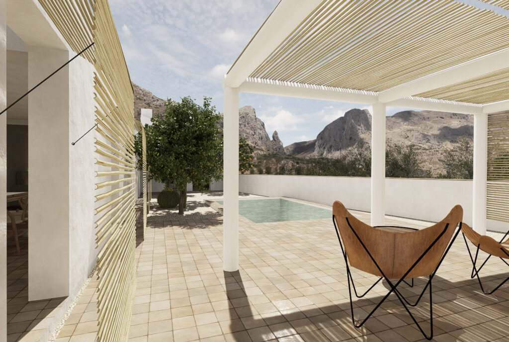 El proyecto consiste en la rehabilitación de una antigua vivienda en una aldea de la Axarquía malagueña, transformándola en una casa de veraneo. Se trata de un edificio entre medianeras que, a lo largo del tiempo, fue creciendo mediante la incorporación de volúmenes destinados a labores agrícolas, extendiéndose desde la vivienda original hacia el fondo de la parcela. Este crecimiento en capas sucesivas, como una cebolla, culmina en unas magníficas vistas hacia la sierra.