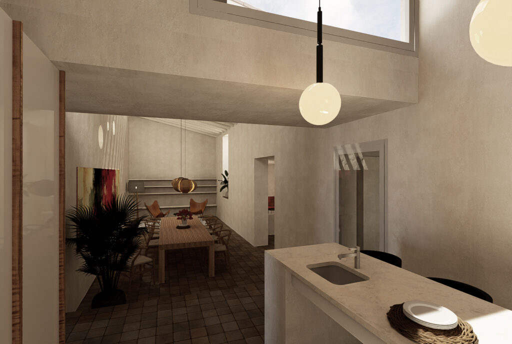 La intervención busca aprovechar al máximo los espacios existentes, minimizando las alteraciones estructurales y abriendo huecos estratégicos que permiten la entrada de luz en las zonas centrales. Se respeta así la característica organización en estratos del inmueble y se mantienen las sensaciones de penumbra y frescor propias de la arquitectura tradicional de la región.